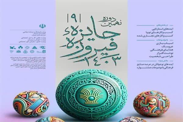 بیرانوند اضافه کرد: نهمین دوره جایزه فیروزه با حمایت از کالاها و محصولات فرهنگی با الگوی ایرانی و اسلامی و با رویکرد ایدههای استارتاپی، کسب و کارهای نوپا، کسب و کارهای تجاری شده و فعال در سراسر استانهای کشور در دو مرحله تعیین برگزیدگان استانی و تعیین و تقدیر برگزیدگان ملی برنامهریزی شده است.