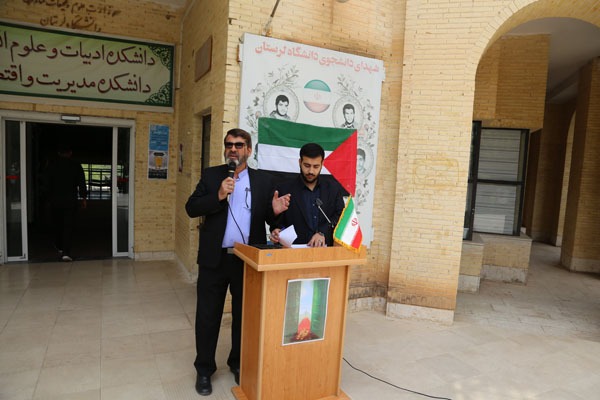 در تجمع دانشگاه لرستان، بیانیه سازمان بسیج دانشجویی در محکومیت جنایتهای رژیم صهیونیسی قرائت شد.