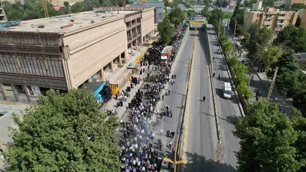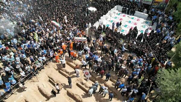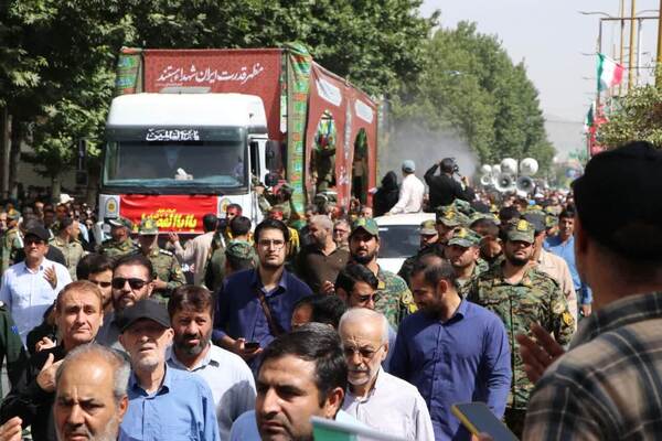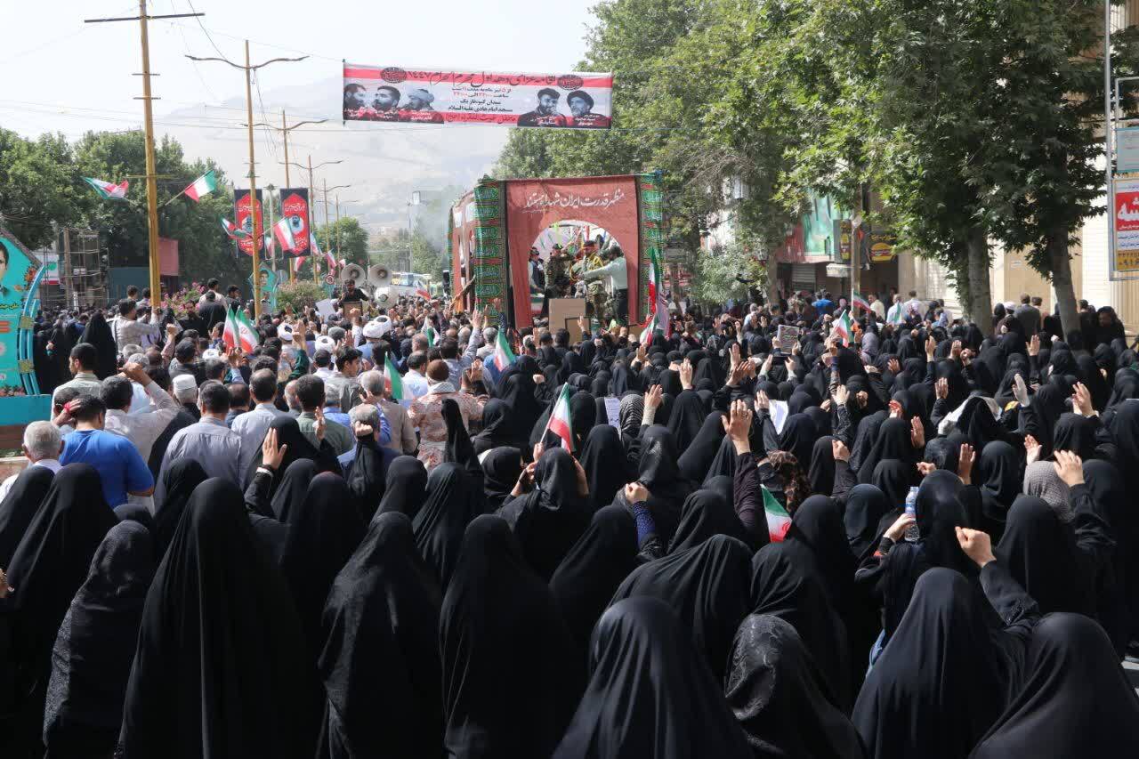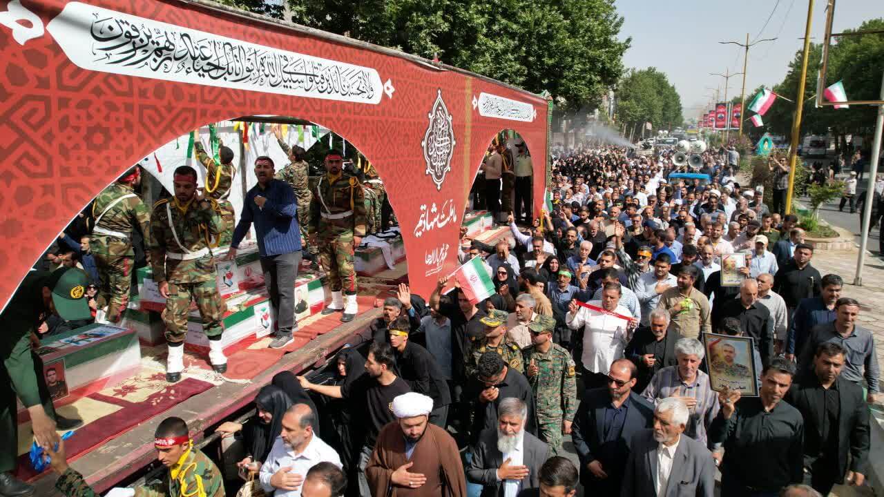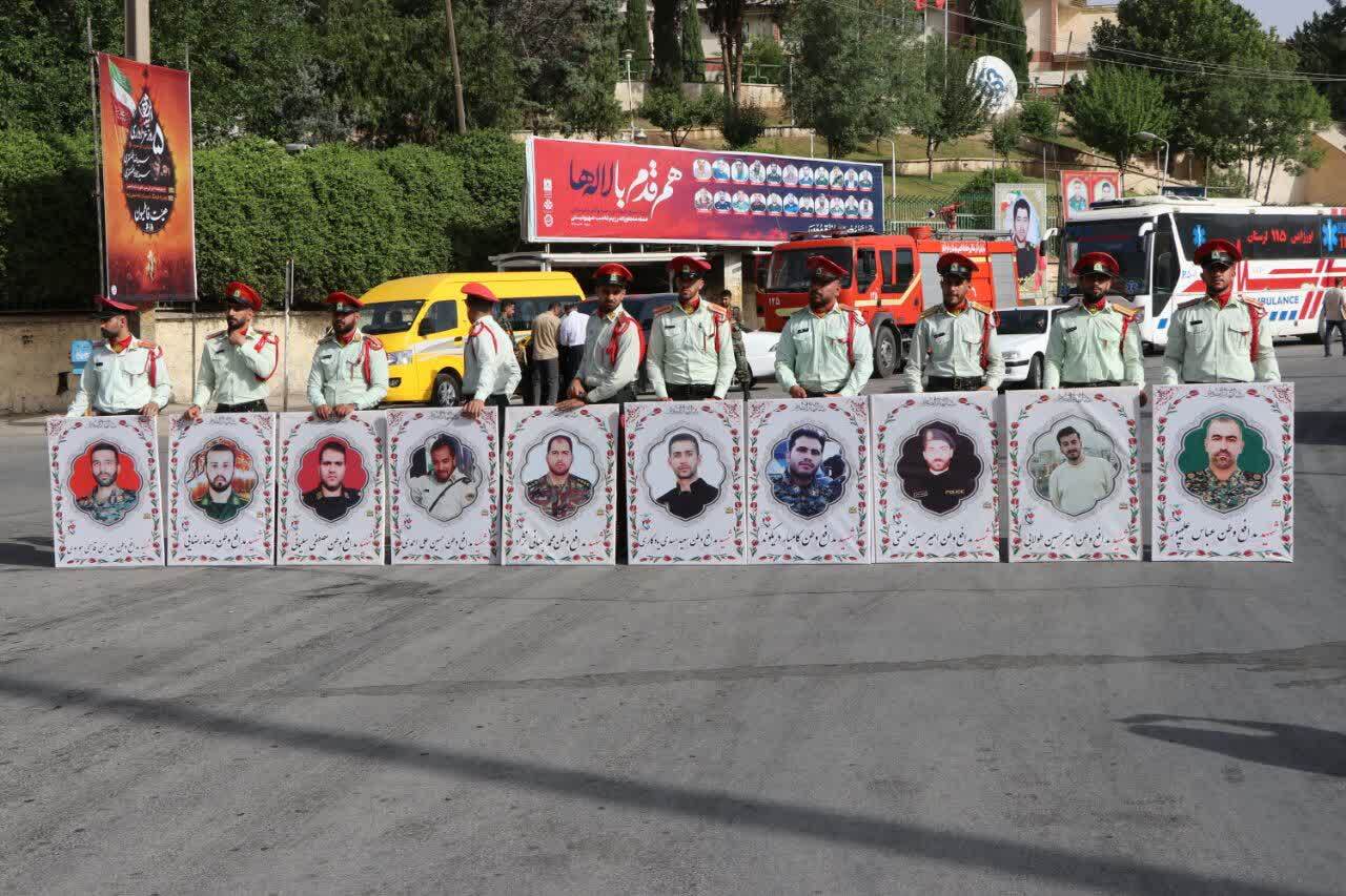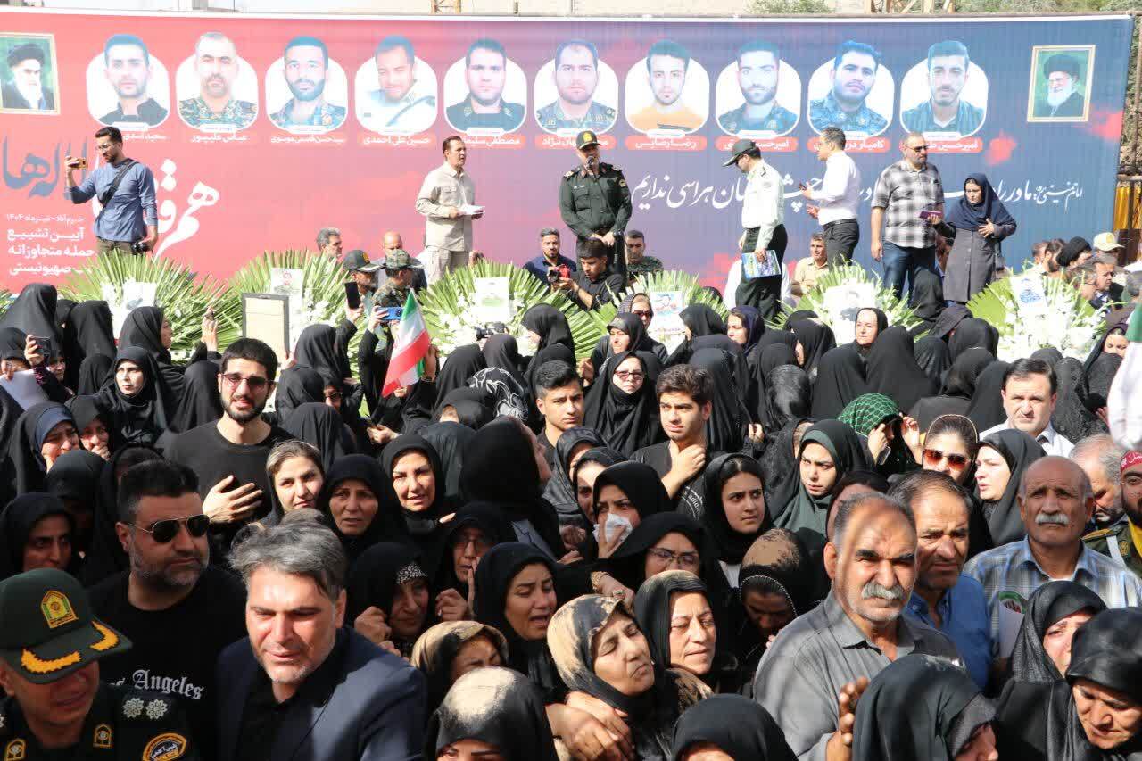 مراسم تشییع پیکر مطهر ۹ تن از شهدای انتظامی و یک شهید سپاه پاسداران در پی حمله رژیم سفاک صهیونی به خاک کشورمان، امروز، پنجم تیرماه در خرمآباد برگزار شد.