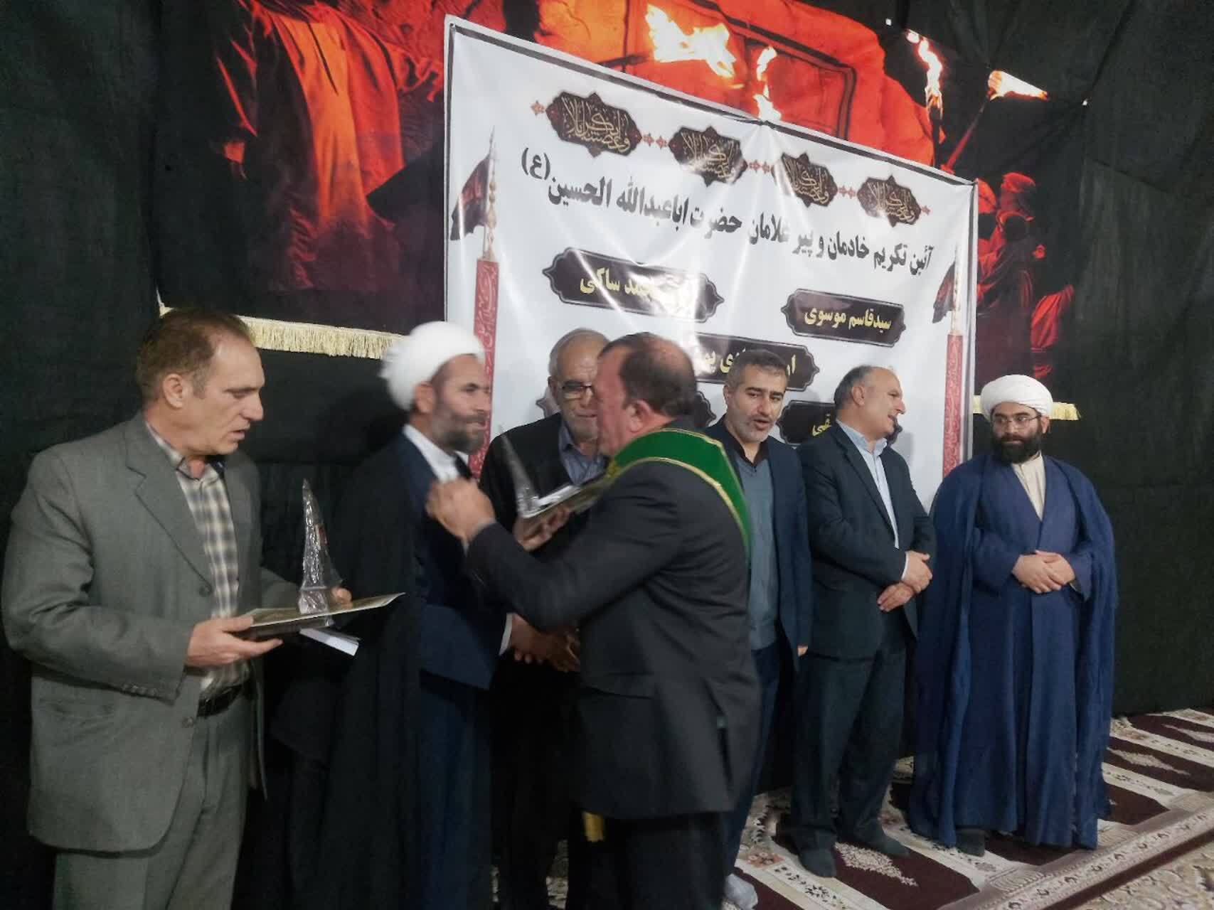 این مراسم معنوی پس از مداحی رضا سیفزاده، از نادر متقی، اردشیر هادیپور، قدرت بازوند و سیدقاسم موسوی تجلیل شد. همچنین طی مراسمی جداگانه، از شیخ محمد ساکی تقدیر شد.
